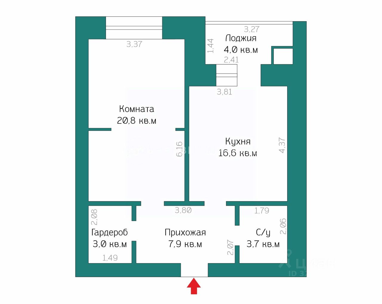 Планировка удобнейшая! Большая комната 20,8 кв.м, разделенная на две зоны. Кухня 16,6 кв.м с выходом на лоджию. Совмещенный санузел 3,7 кв.м. Гардеробная (!!!) 3,0 кв.м. Просторная прихожая 7,9 кв.м.