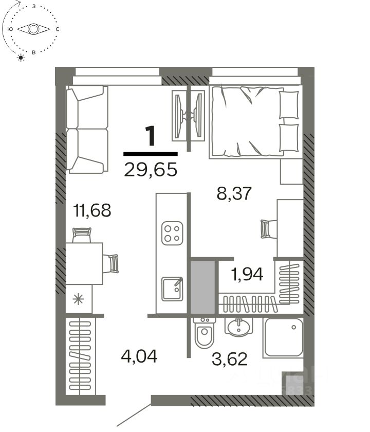 Общая площадь29,65 м2