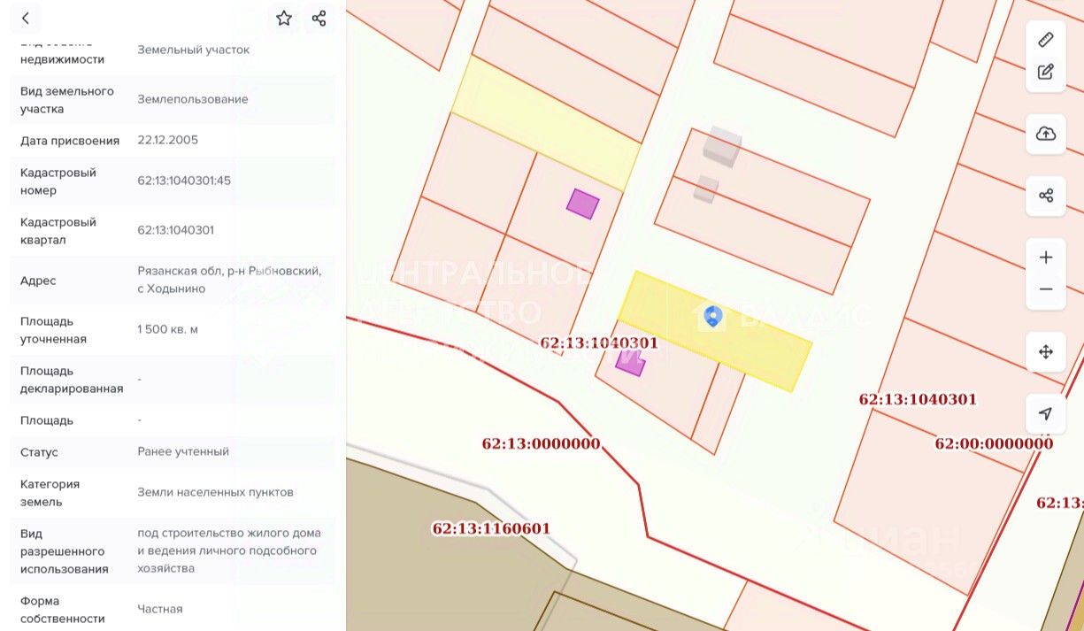 Межевание проведено. Кадастровый номер 62:13:1040301:45