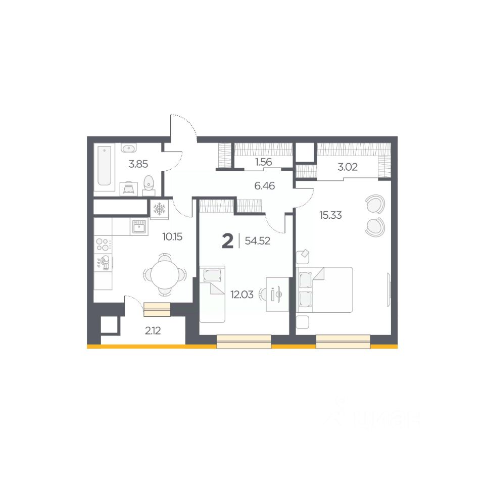 Общая площадь54,52 м2