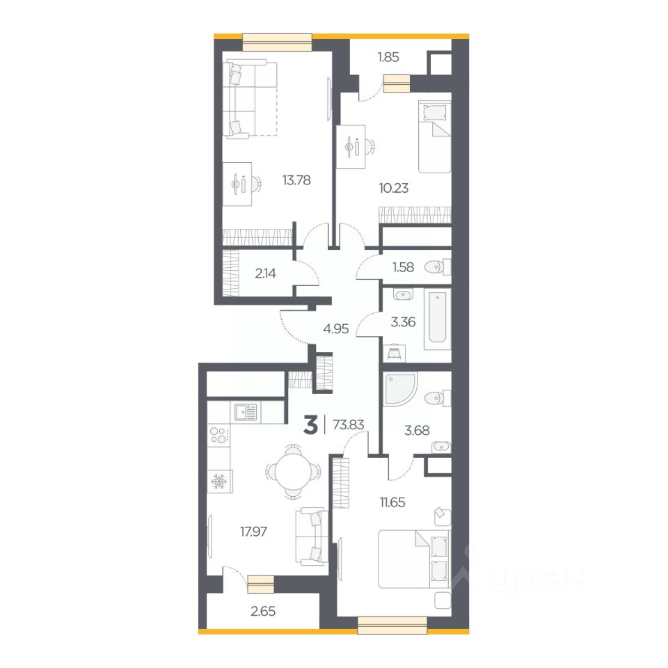 Общая площадь73,83 м2