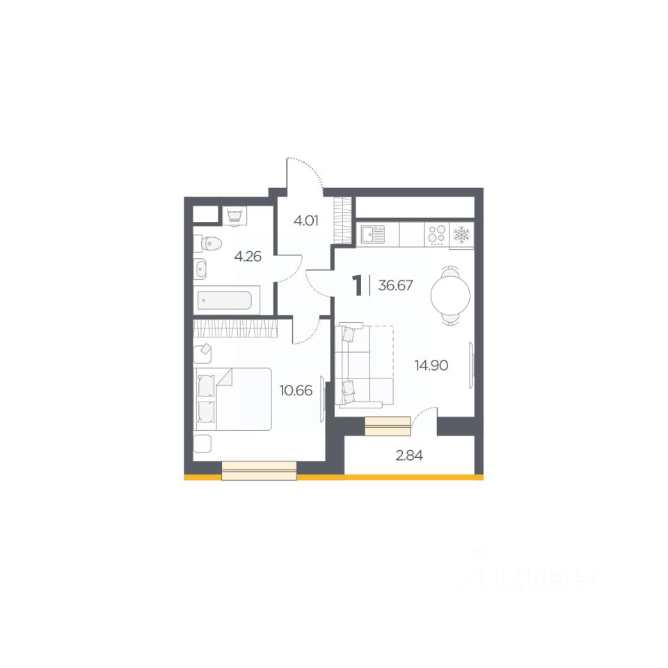 Общая площадь36,67 м2
