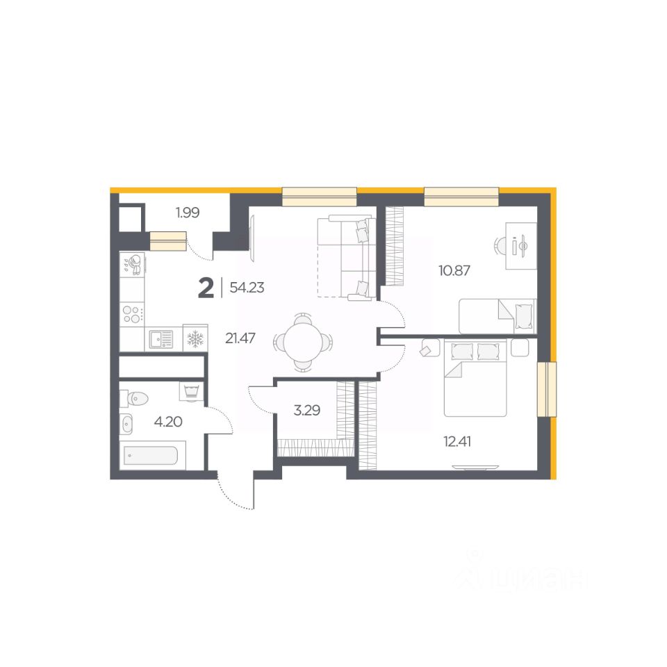 Общая площадь54,23 м2