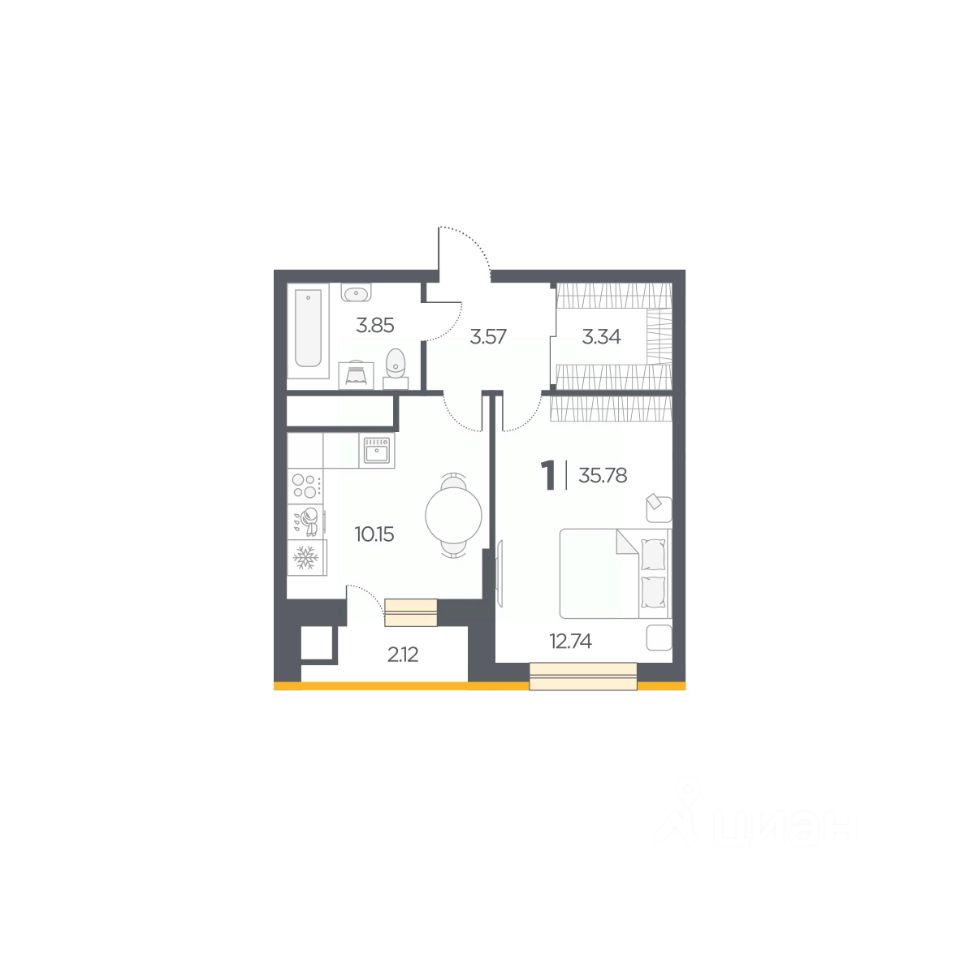 Общая площадь35,78 м2