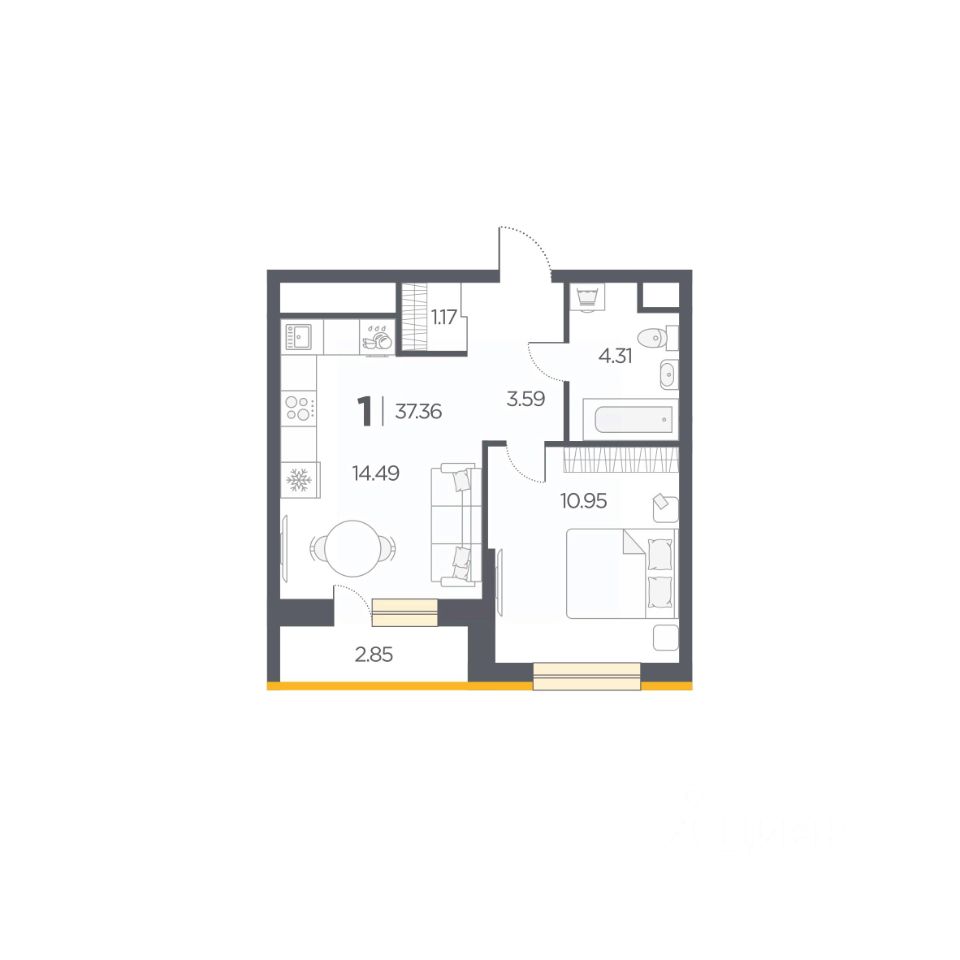 Общая площадь37,36 м2
