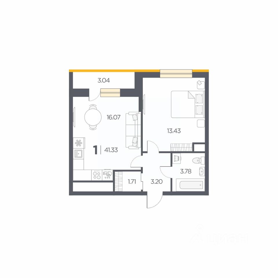 Общая площадь41,33 м2