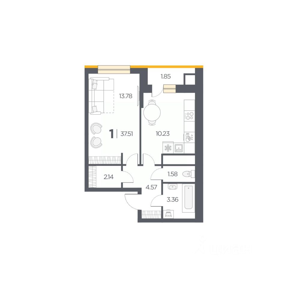 Общая площадь37,51 м2