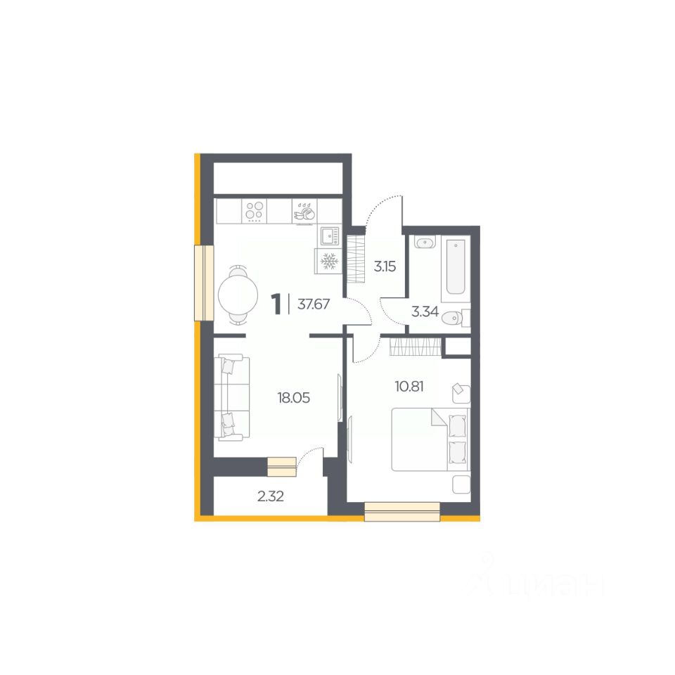 Общая площадь37,67 м2