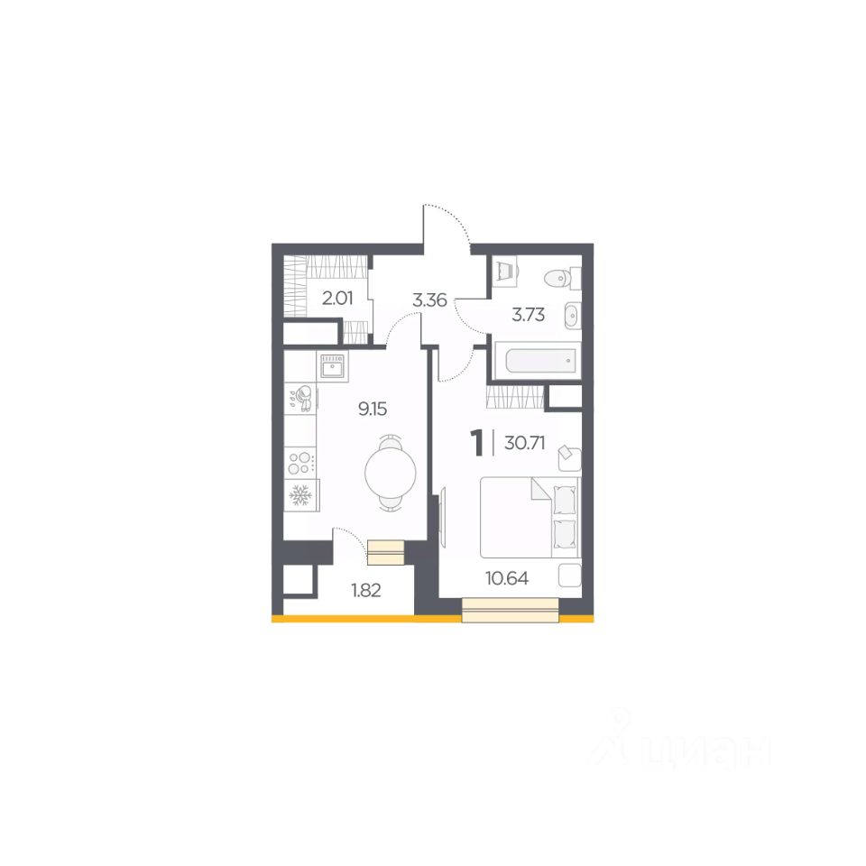 Общая площадь30,71 м2