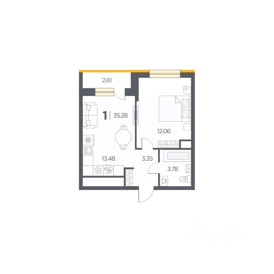 Общая площадь35,28 м2