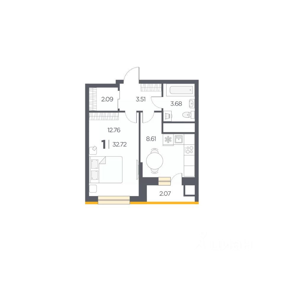 Общая площадь32,72 м2
