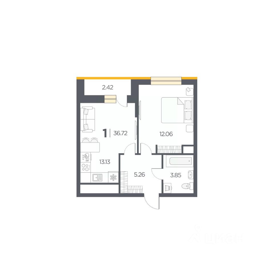 Общая площадь36,72 м2