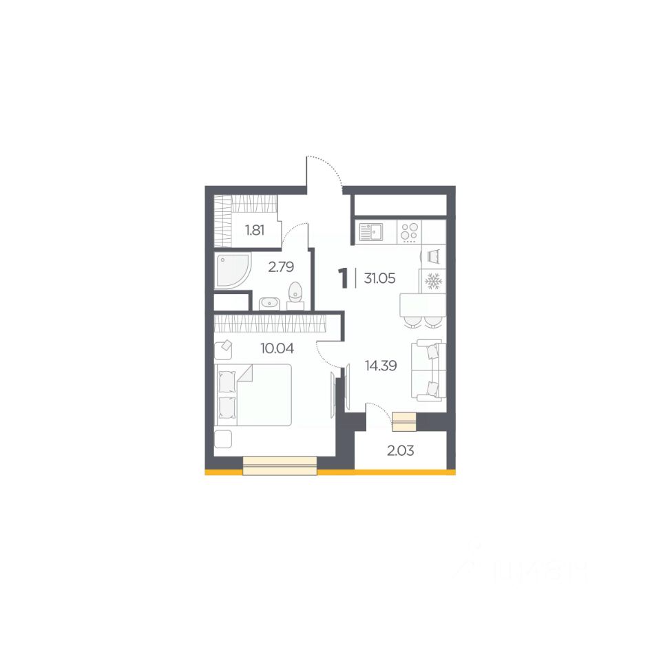 Общая площадь31,05 м2