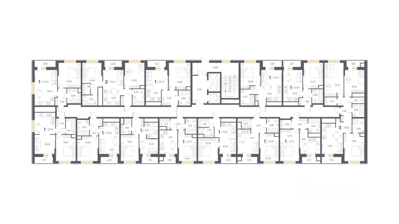 Общая площадь39,05 м2