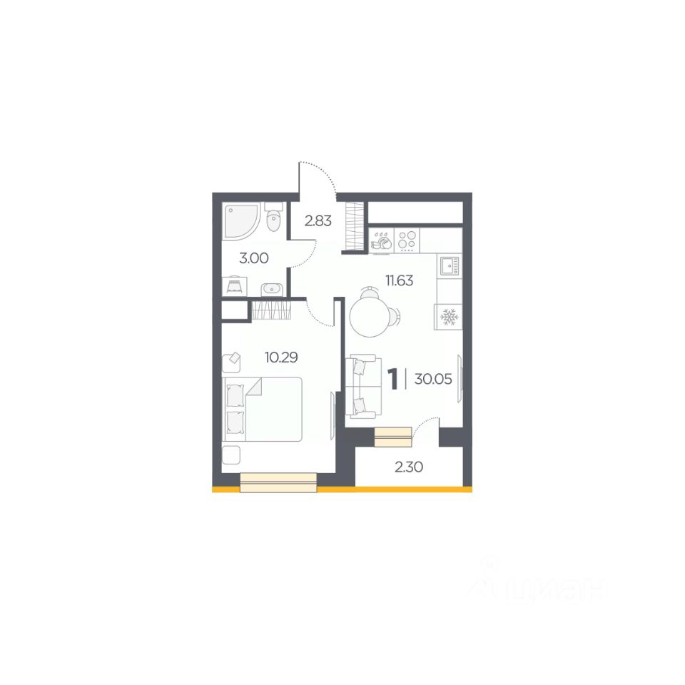Общая площадь30,05 м2