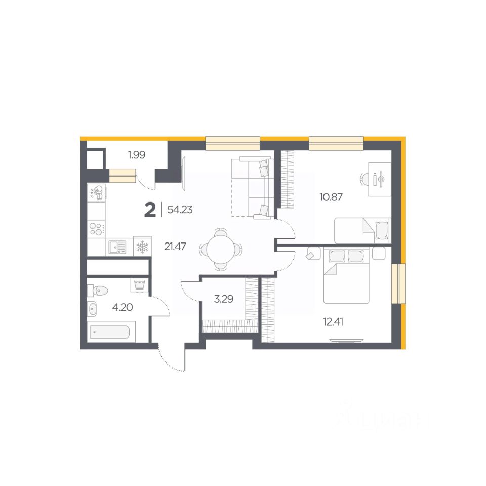Общая площадь54,23 м2