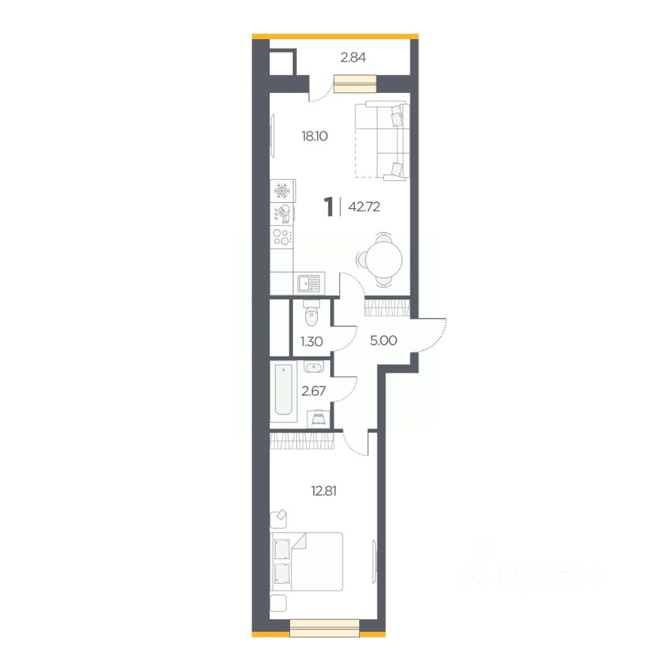 Общая площадь42,72 м2