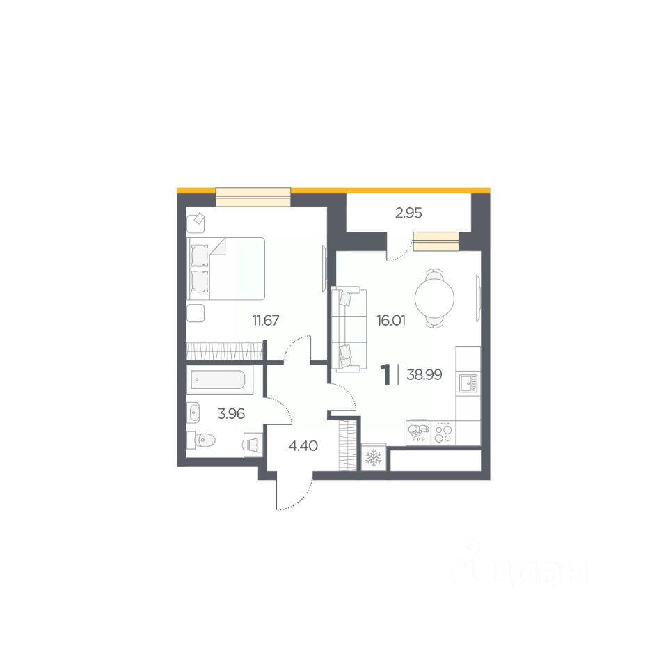Общая площадь38,99 м2