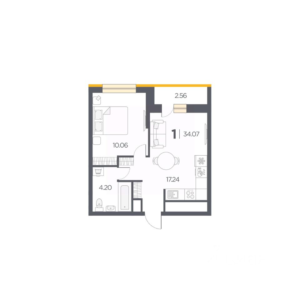 Общая площадь34,07 м2