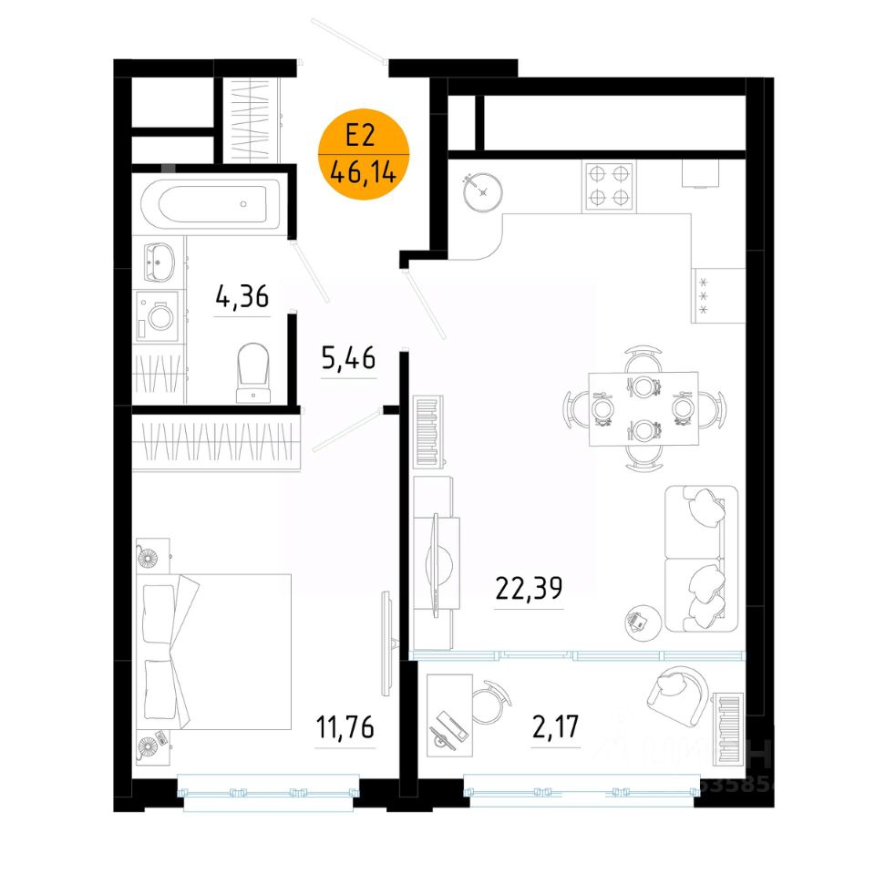 Общая площадь46,14 м2