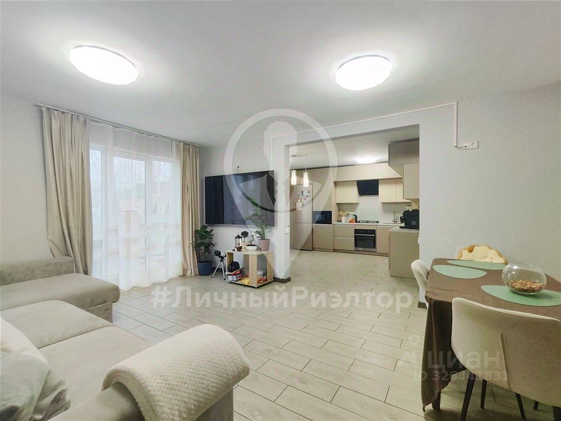 ID в ИМЛС: 17771362 Продам Дом площадью 155,6 м деревня Вишневка 1-й Вишнёвый проезд 6,расположенный на участке 10 сот. Дом не требует вложений. На первом этаже расположена уютная кухня-гостиная с панорамным остеклением, 2 кабинета, кладовая, хоз.блок, санузел. На втором этаже -детская, 2 спальни, санузел. По всему первому этажу смонтирован теплый пол. Канализация, водоснабжение-центральное. Отопление-газовый котел. Несколько контуров фильтрования воды, плюс дополнительный фильтр для питьевой воды. Ремонт выполнен по современным стандартам с использованием высококачественных материалов, в теплых нейтральных тонах. Продажа с мебелью: качественная кухня, система хранения продумана до мелочей-несколько встроенных шкафов.Гараж на 2 машины, с автоматическими воротами.