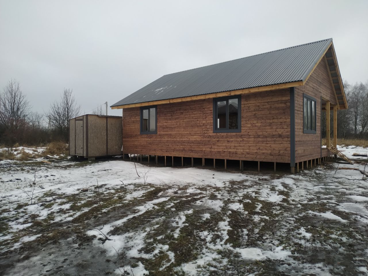 Окна ПВХ графит. Крыша - профлист графит. Утеплены пол и потолок.