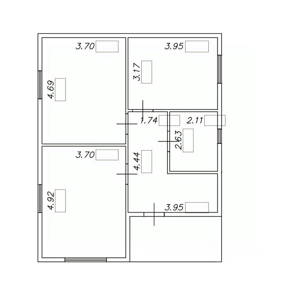 По планировке : 2 комнаты, кухня- гостинная, совмещенный с/у, коридор.