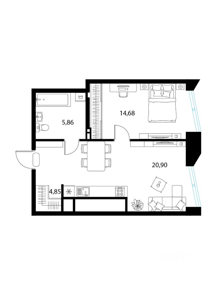 Общая площадь46,29 м2