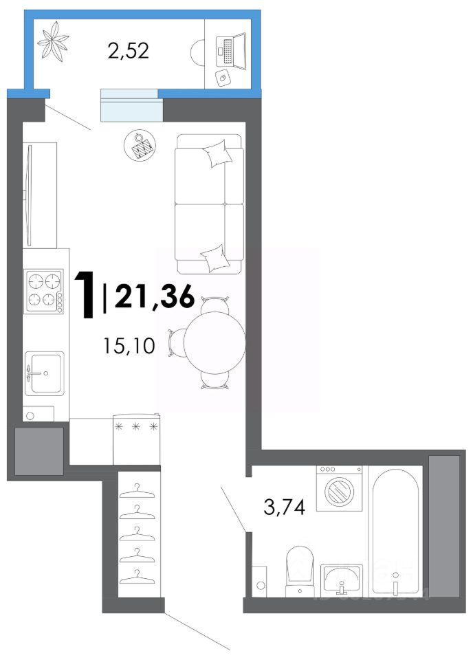 Общая площадь21,36 м2