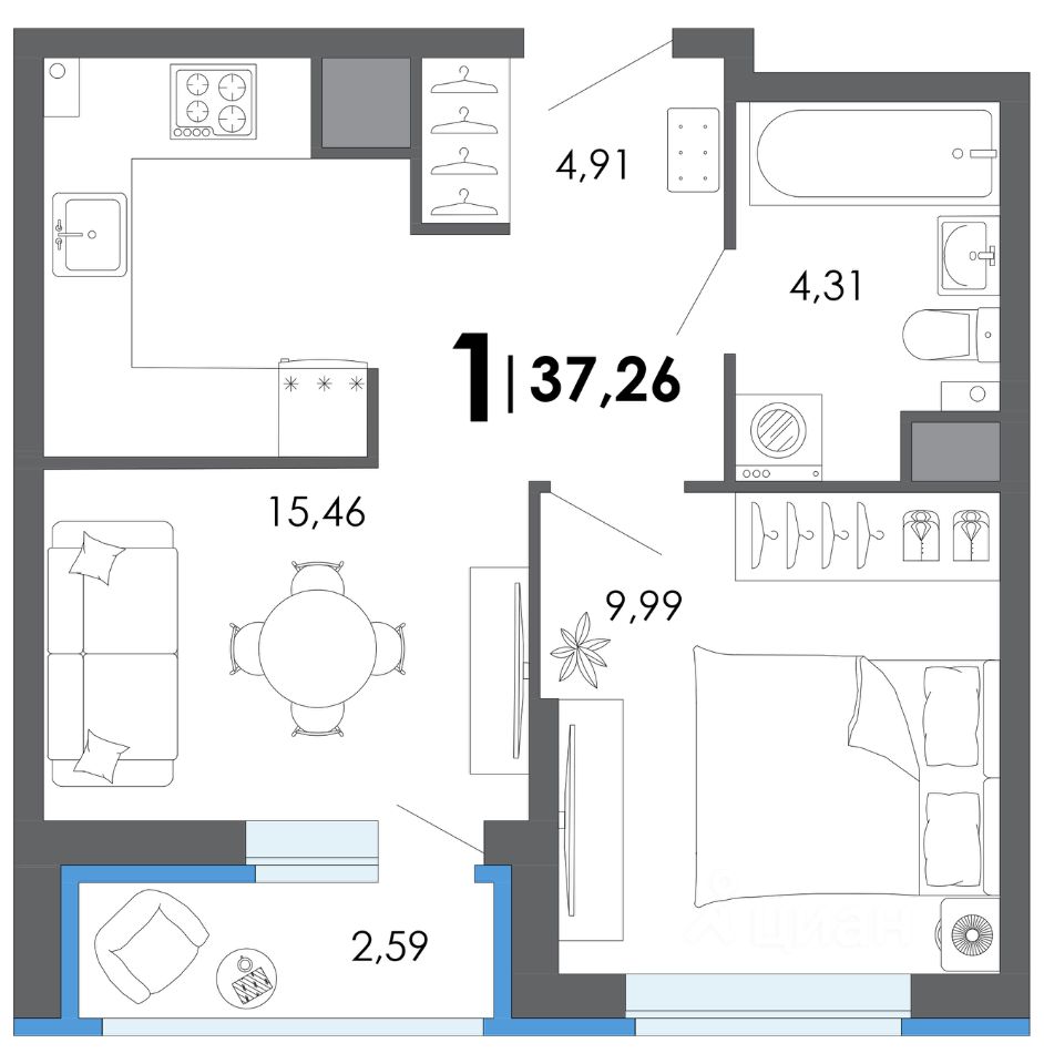 Общая площадь37,26 м2