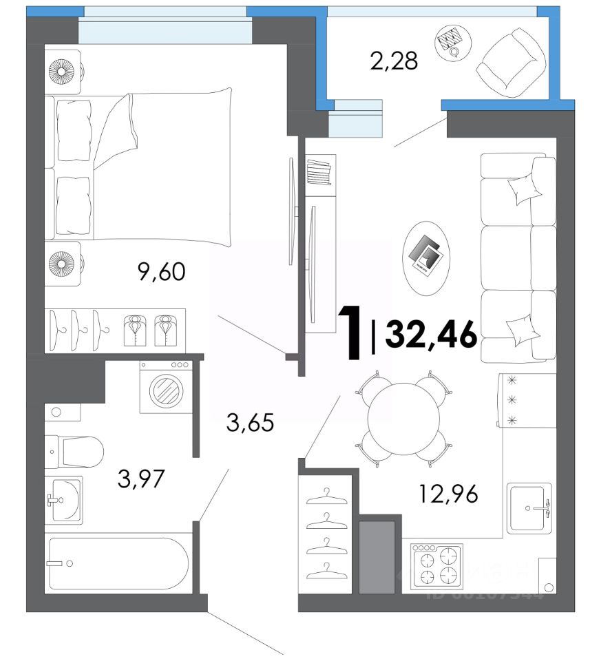 Общая площадь32,46 м2