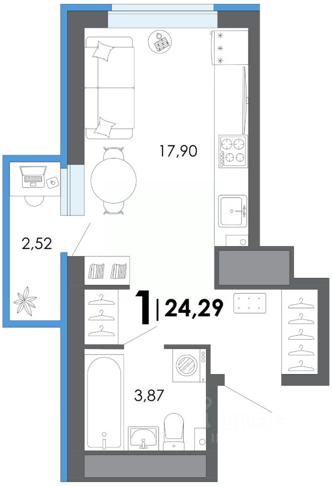 Общая площадь24,29 м2