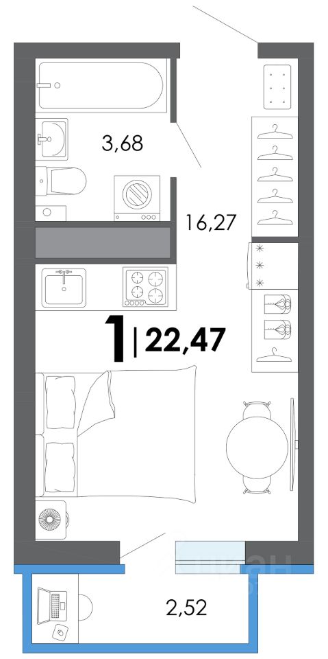 Общая площадь22,47 м2