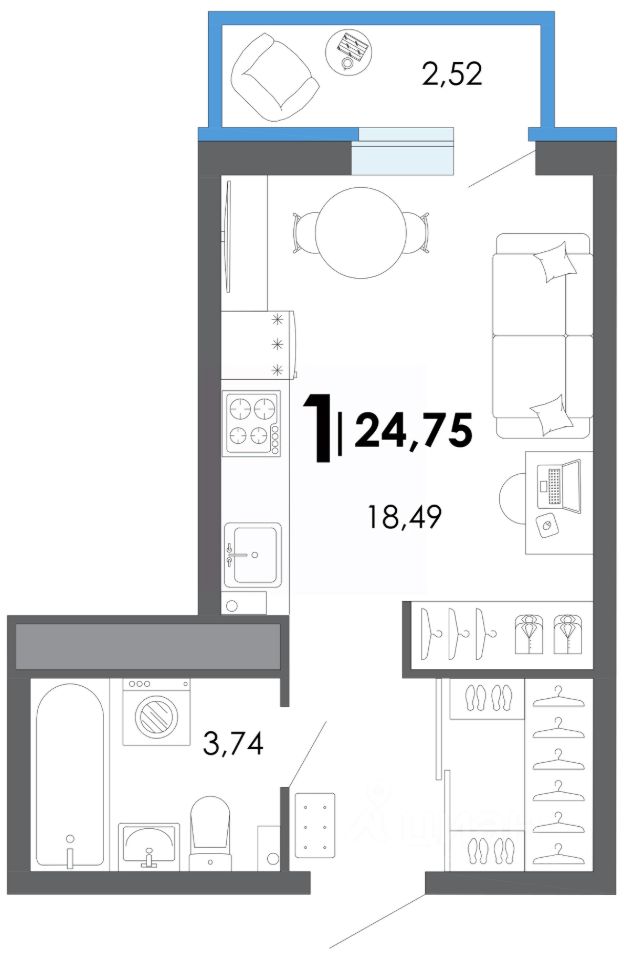Общая площадь24,75 м2