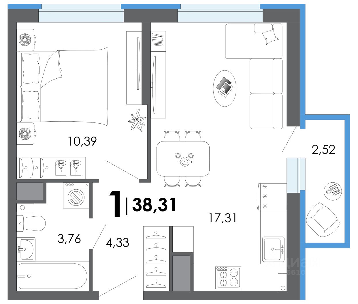 Общая площадь38,31 м2