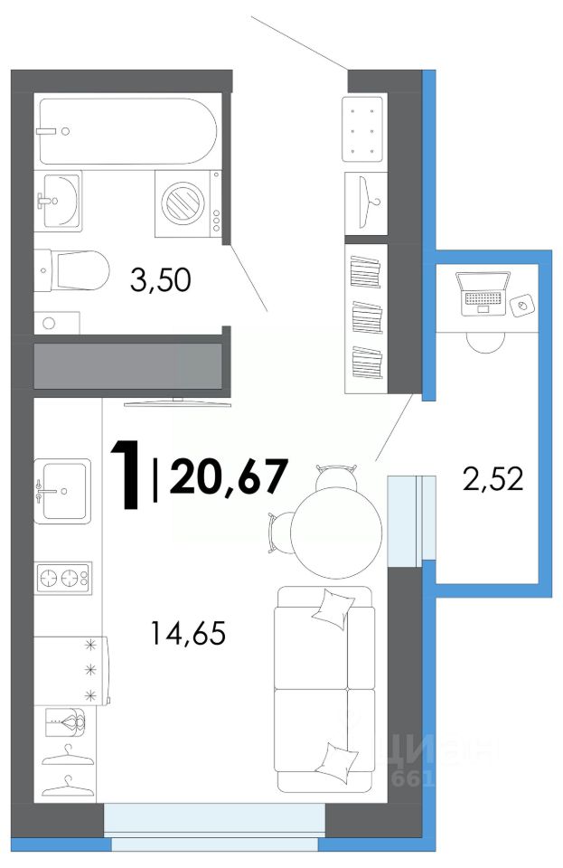 Общая площадь20,67 м2