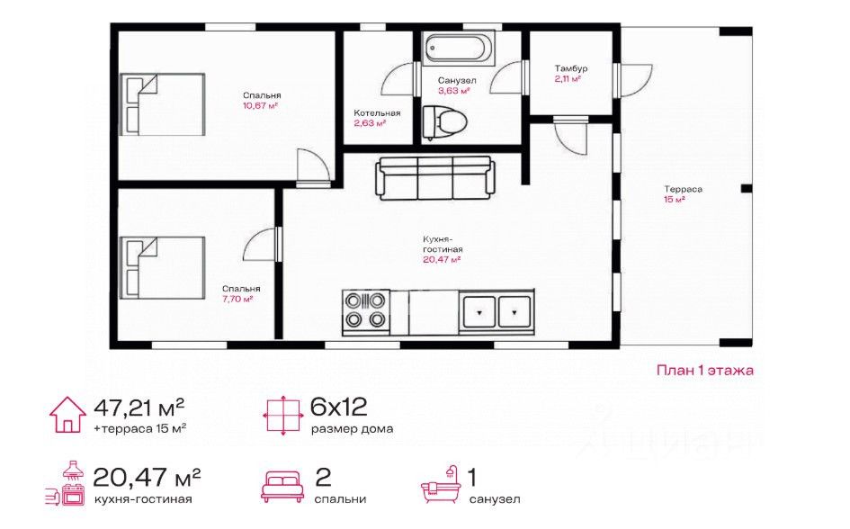 Общая площадь47,21 м2