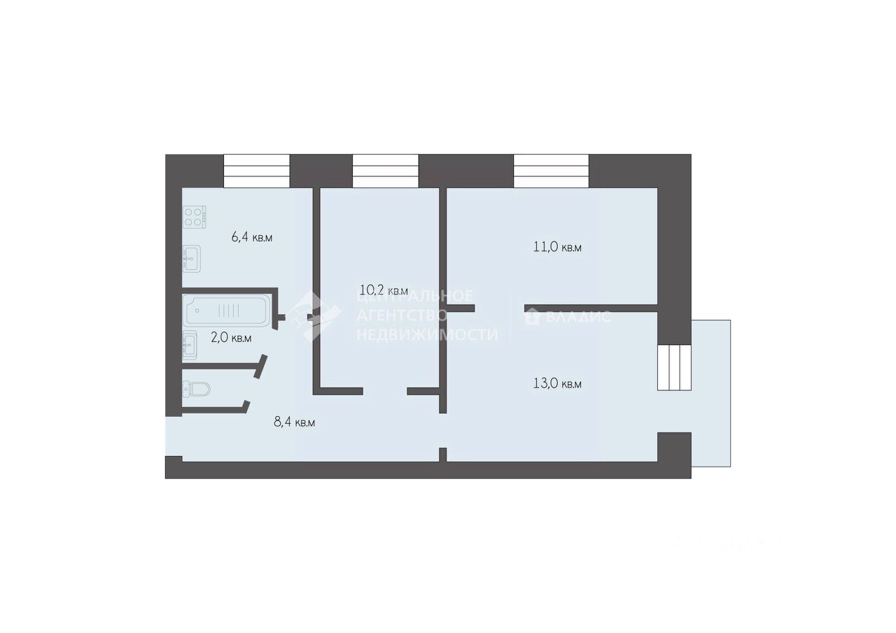 - Общая площадь: 52,9 кв. м