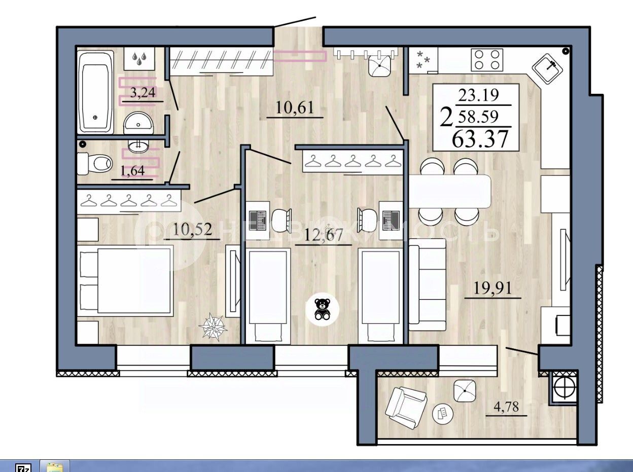 Общая площадь63,37 м2