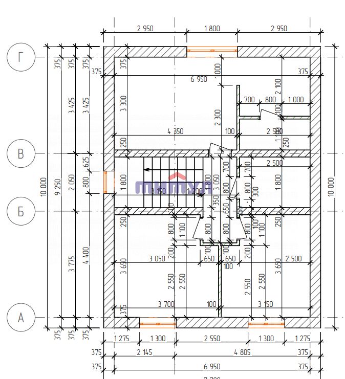 Второй этаж (железобетонные перекрытия):