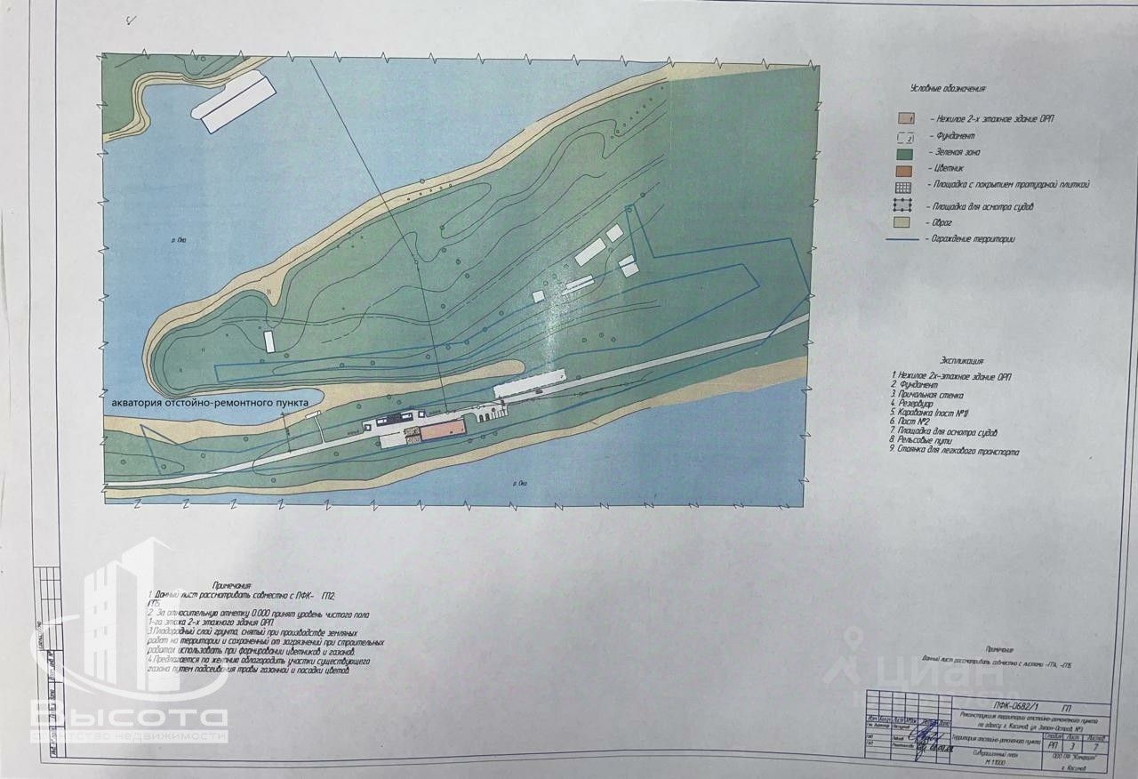 Продается земельный участок 1420 кв.м.(к\н 62:26:0010108:63), на котором расположен отстойно-ремонтный пункт для прогулочных и маломерных судов, незавершенное строительство по принципу Эллинга под гостиницу 644,5 кв.м.(к\н 62:26:0010108:91), с перспективой реконструкции в современный яхт-клуб и туристический комплекс. Объект расположен в черте города Касимова на правом берегу реки Ока, в акватории затона ''Касимовский'', рядом с речным портом ''Касимов''. Подведены линии электропередач мощностью 15 и 45 кВт. Градостроительным планом предусмотрена газификация.