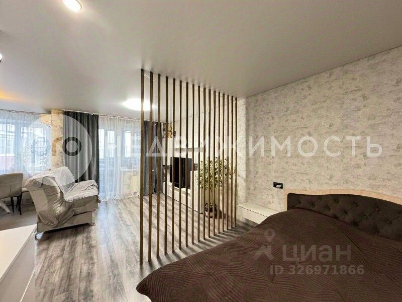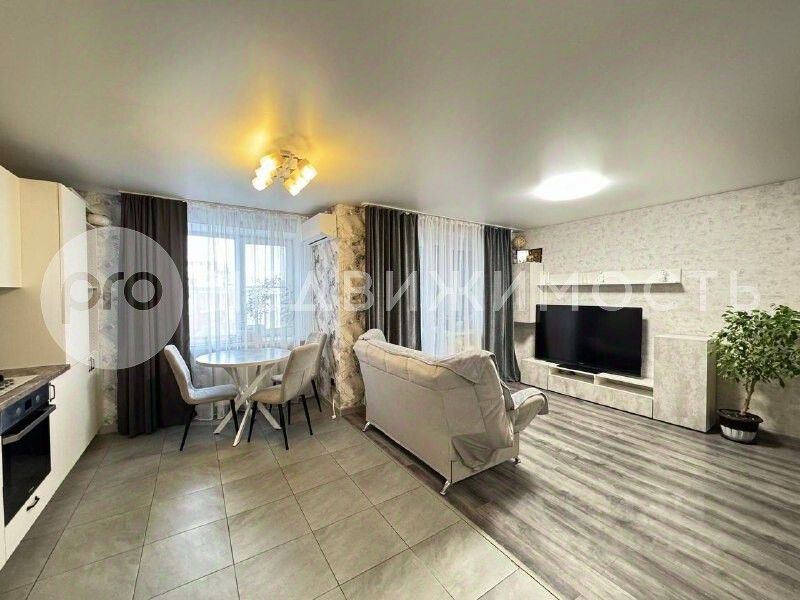 Квартира расположена на 10 этаже 10-этажного дома. Свободная планировка с выделенной зоной для сна. Общей площадью 46 кв.м. Кухонная зона 12 кв.м, зона отдыха с TV 12 кв.м, зона для сна 8 кв.м, совмещенный санузел, просторная лоджия.