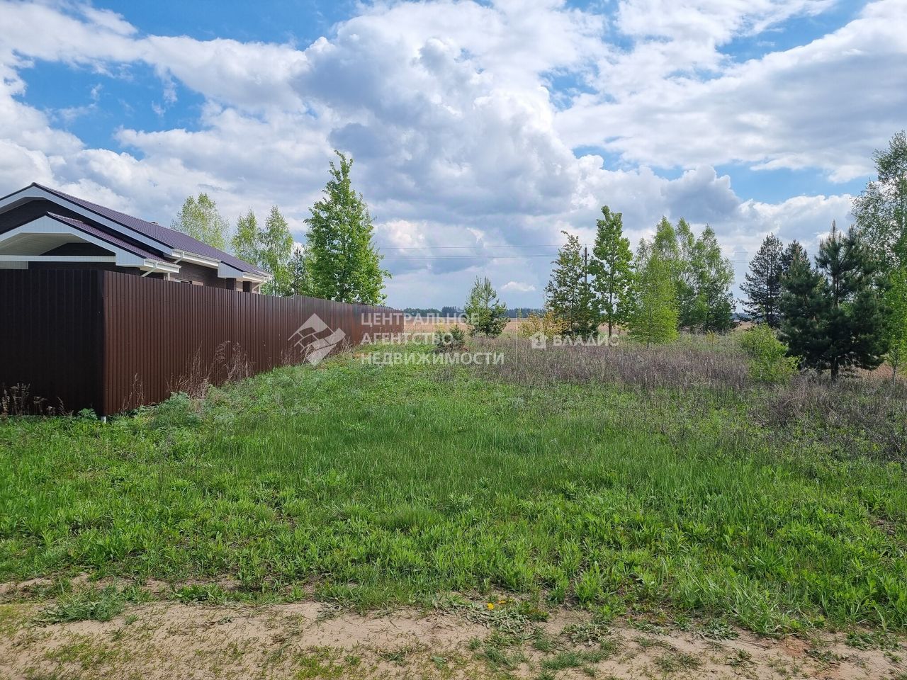 Площадь участка - 13 соток в собственности. Разрешённое использование - ИЖС. Проведено межевание, размеры участка 29 х 45 метров. С одной стороны уже есть забор от построенного рядом дома.
