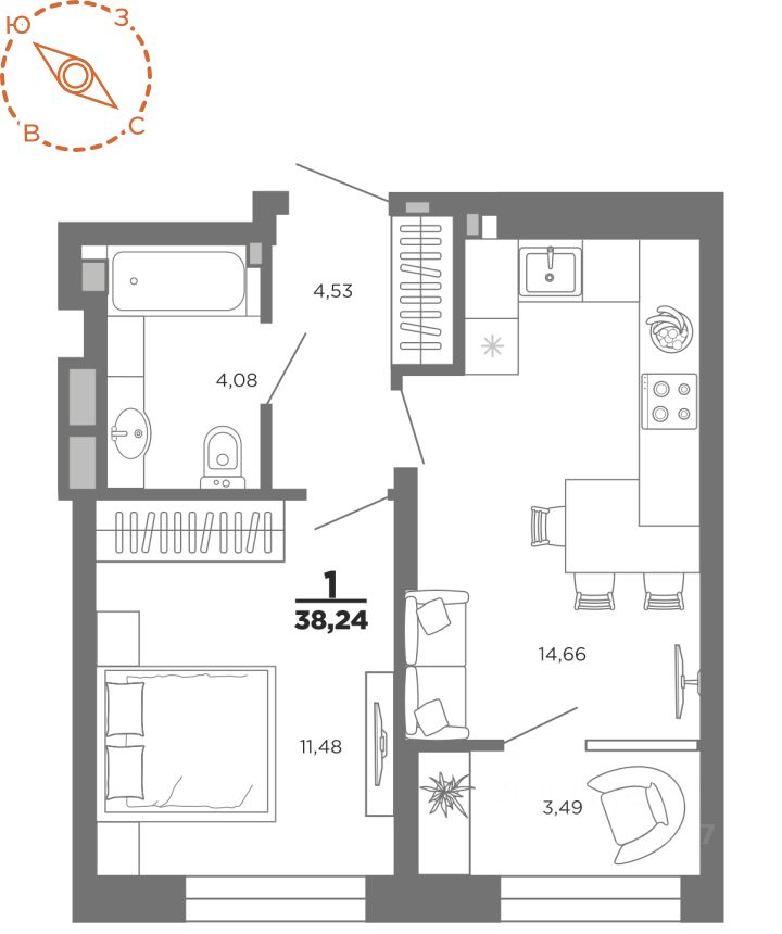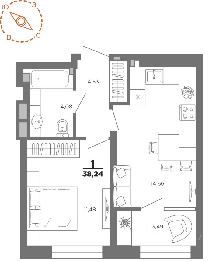 Общая площадь38,24 м2